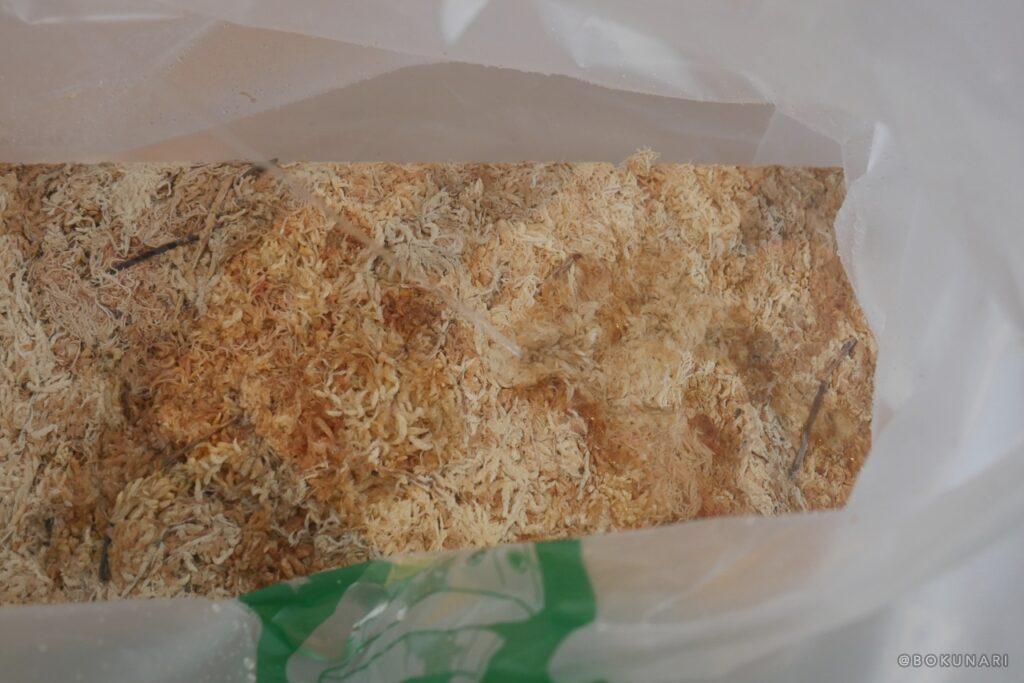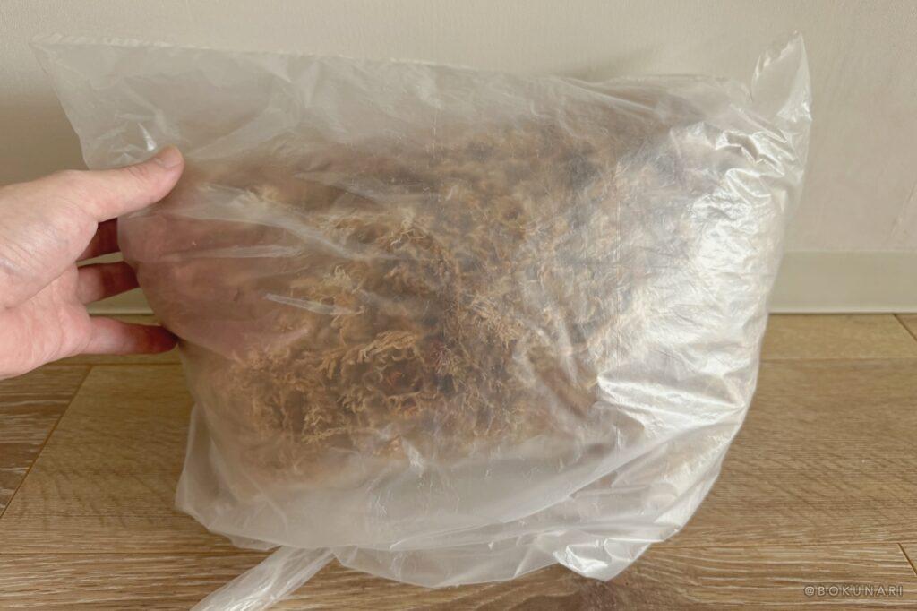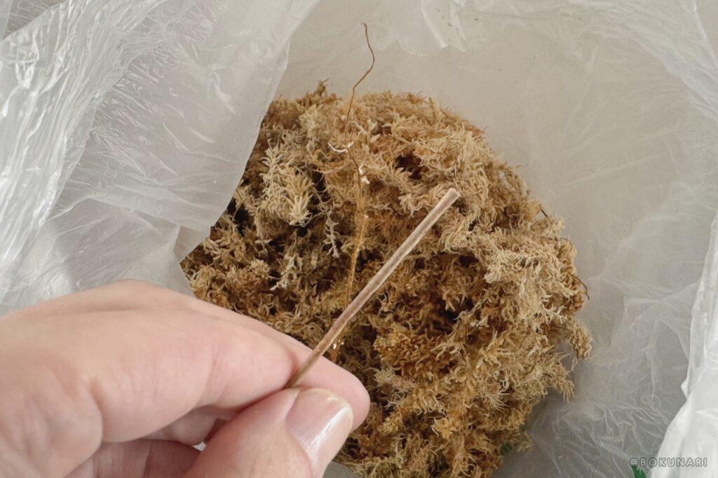 できたら、袋の外側から優しく揉むようにして乾燥水苔をほぐします。