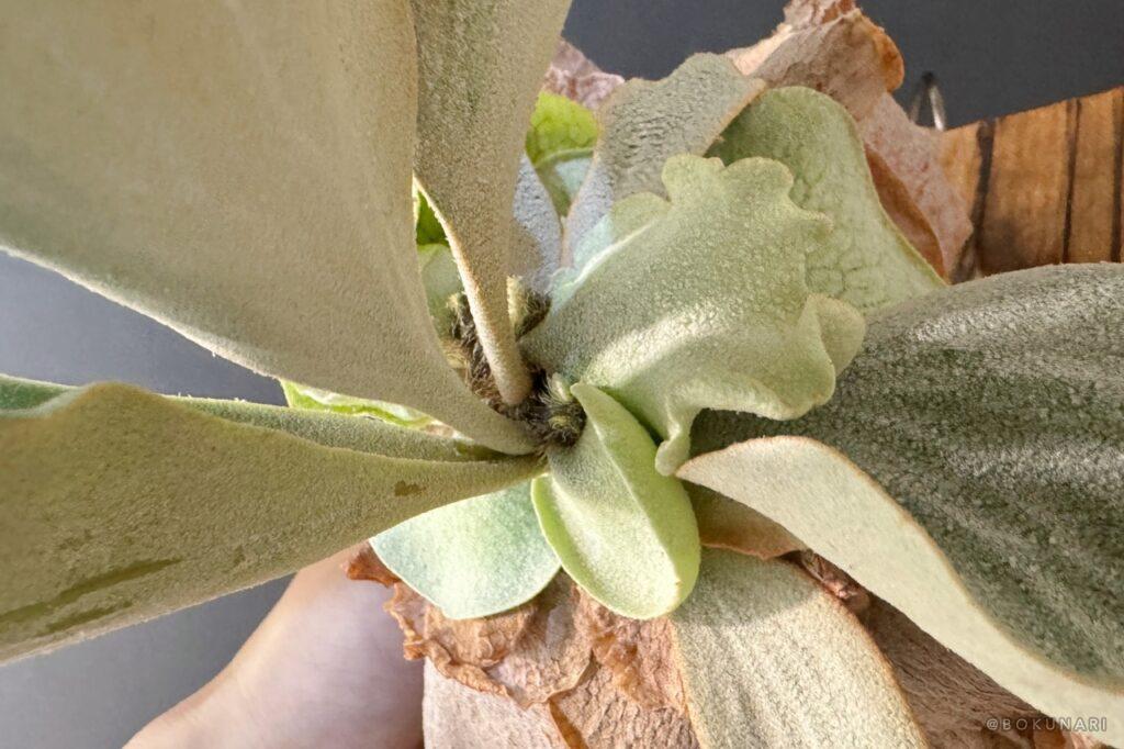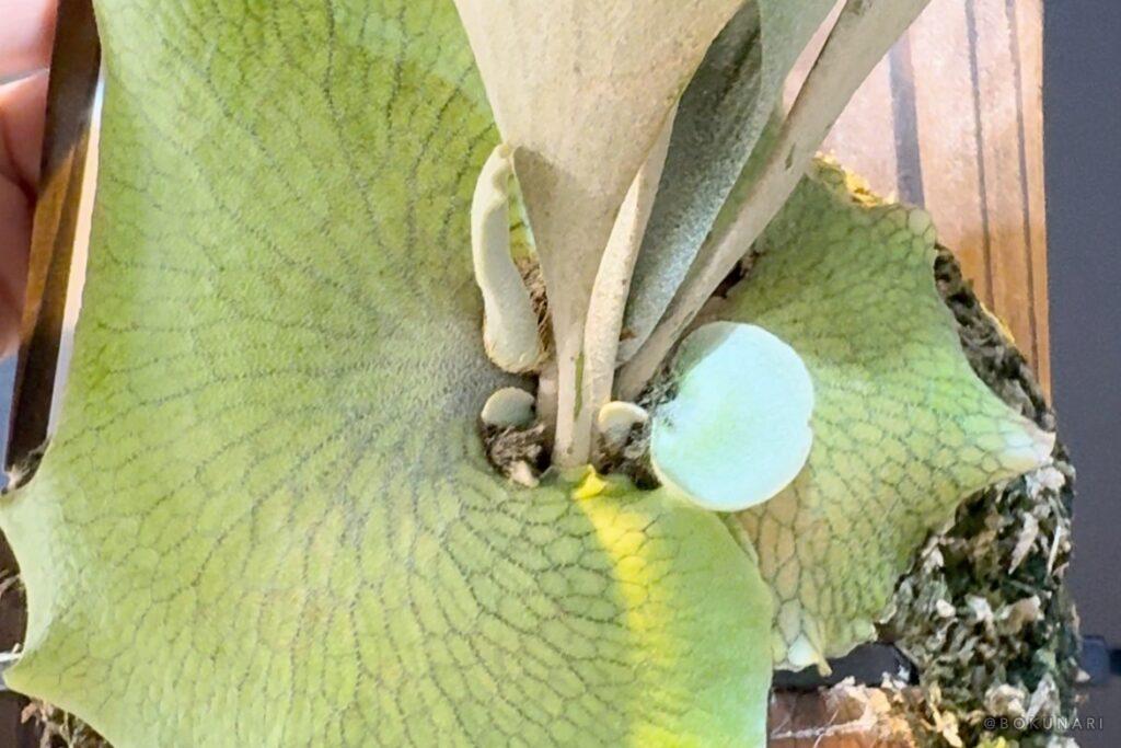 ビカクシダはじめたばかりだと、脇芽すら「もったいない」気持ちになりますが、親株が順調に育てば必ずきちんとした場所に子株が出てくるのでがんばってください!