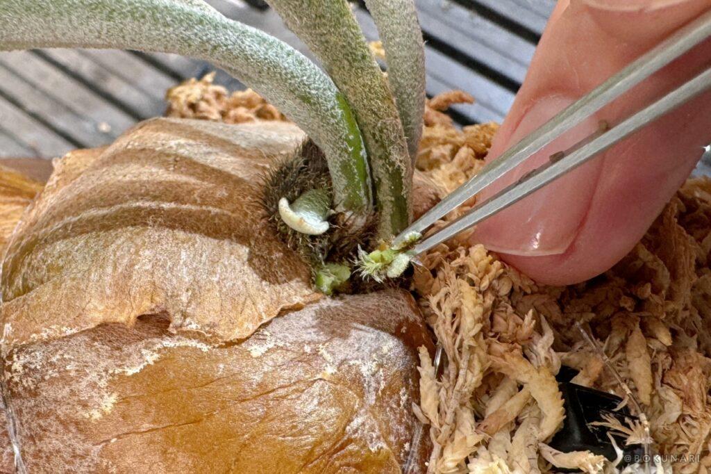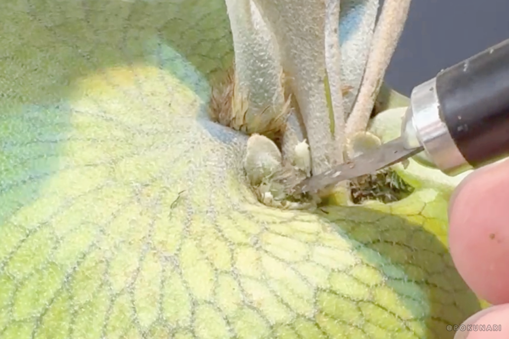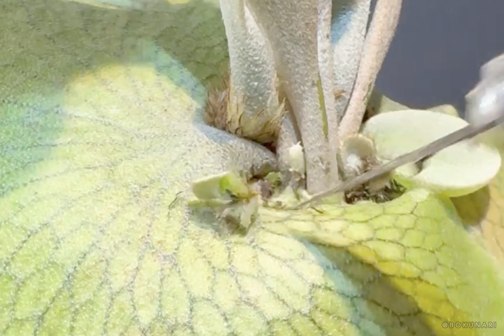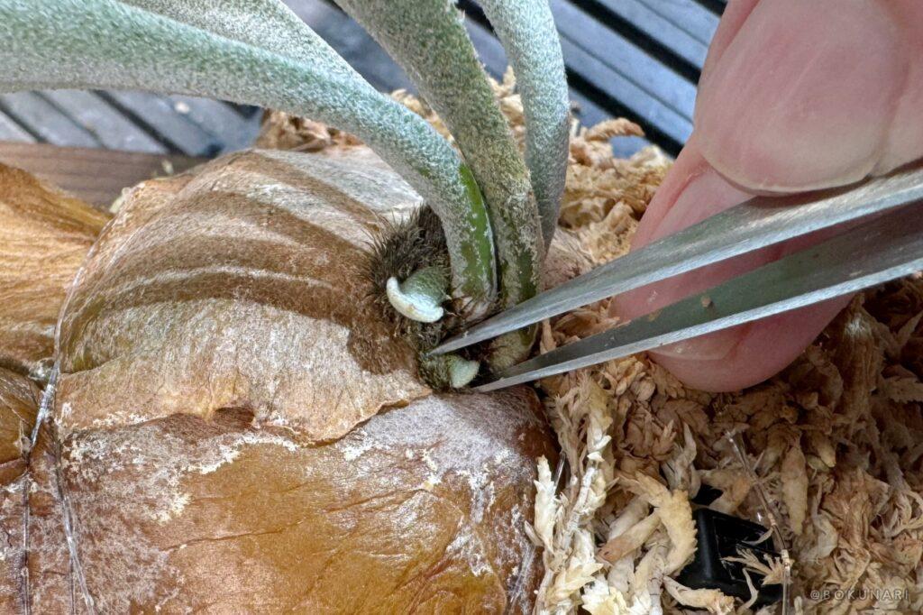 親株の成長点を傷つけないように注意して作業してください。