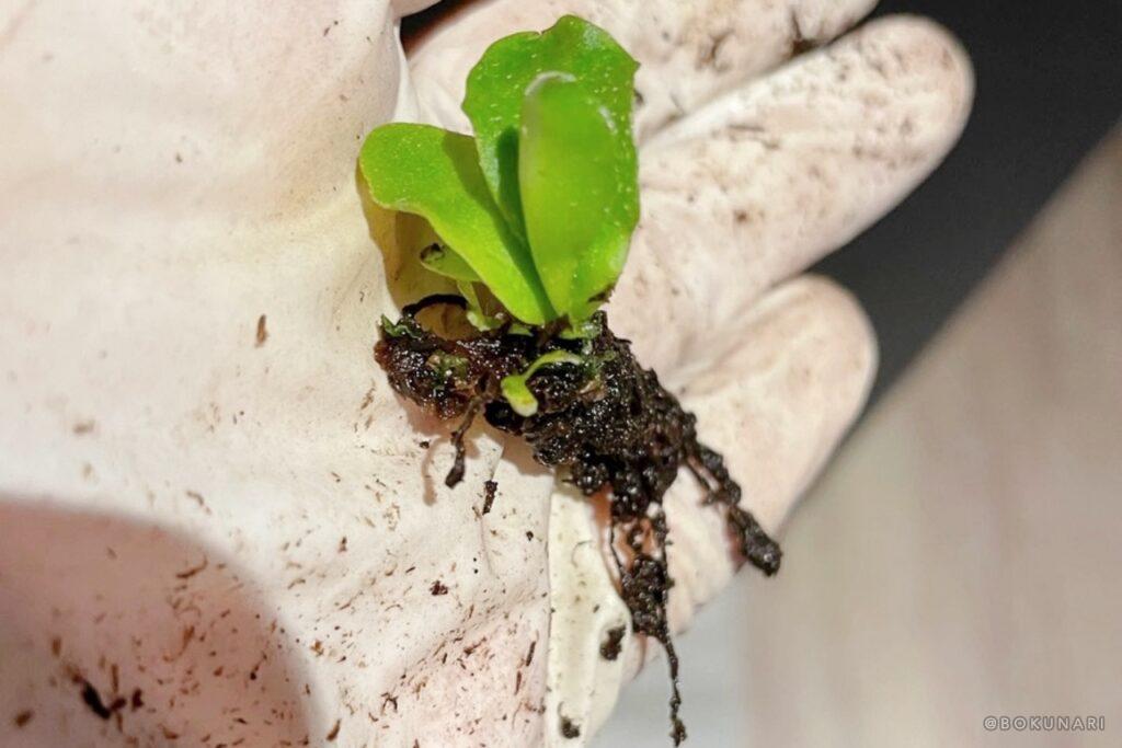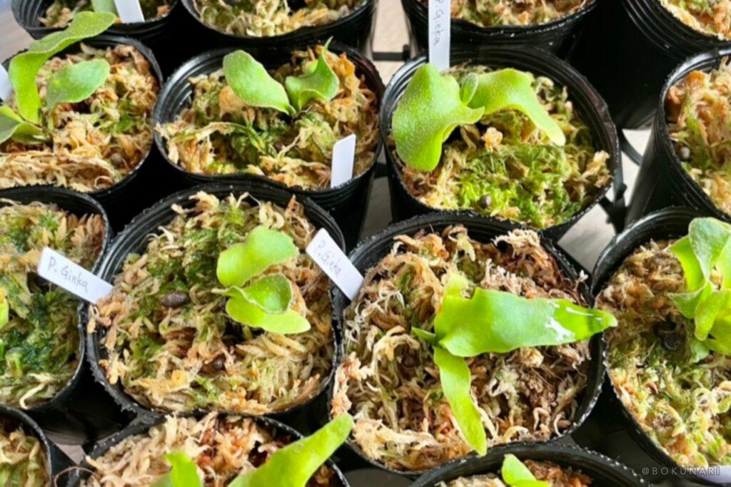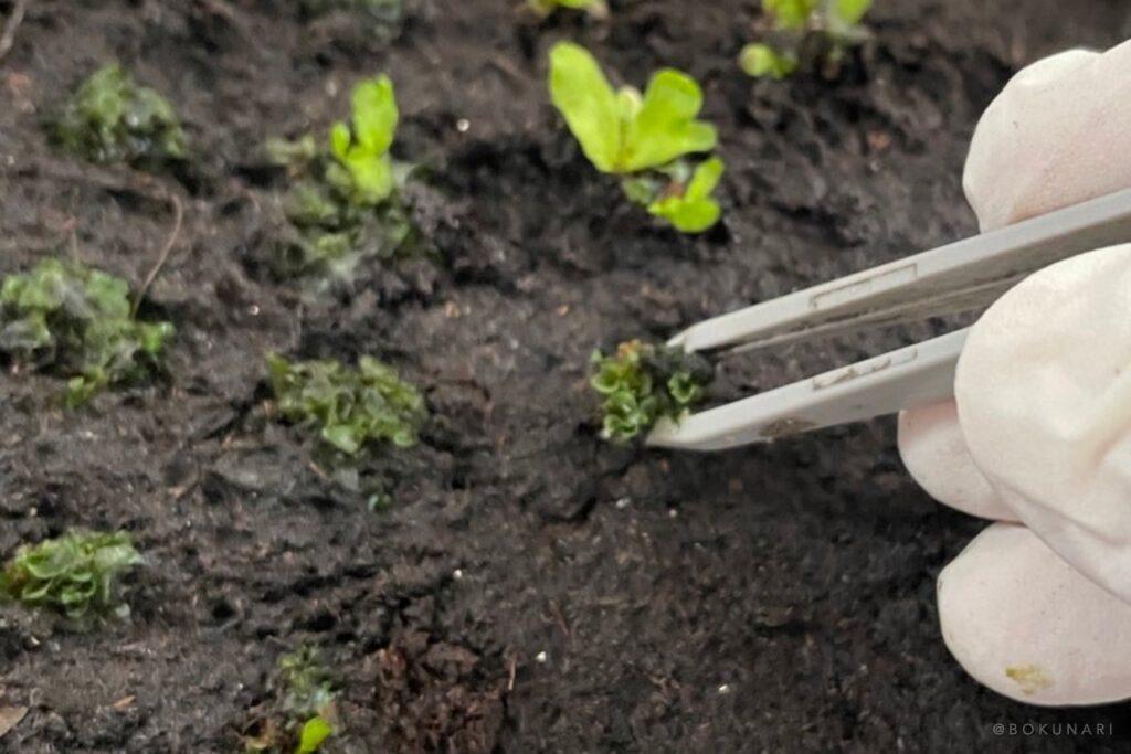 増えてきた胞子体の中でも順調に大きく育ってきた胞子体は、根を残すことを意識しながら1株ずつポットに鉢上げしていきます。