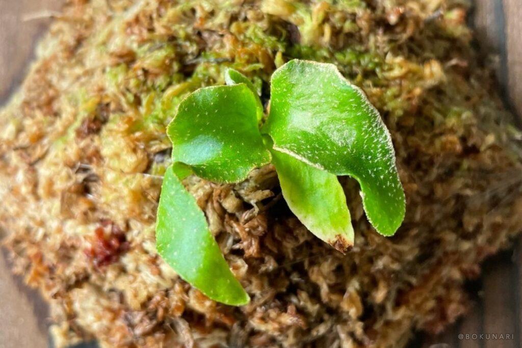 鉢上げできるまでになると、胞子葉に星状毛が乗ってくる様子も見れて、ビカクシダの胞子培養も「少し安心できる段階」です。