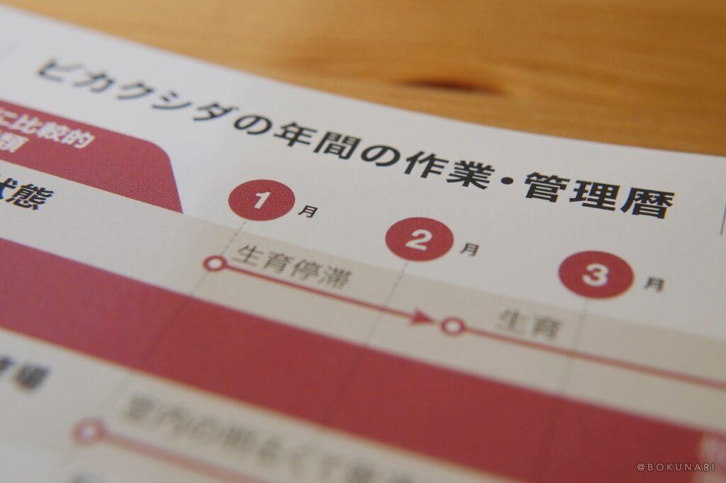 - 1ヶ月ごとのお手入れ方法、栽培環境・管理方法がまとまった12ヶ月栽培ナビが