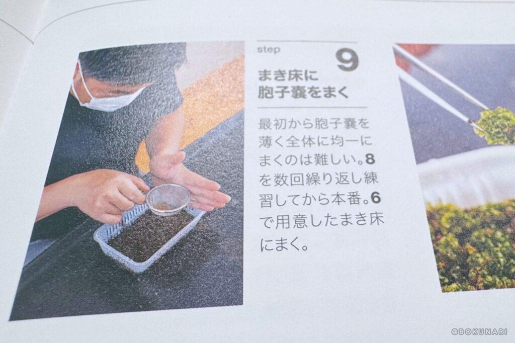 胞子培養に関する情報が4ページ(P.78〜81)に渡って、手順ごとに画像とともに解説されています。