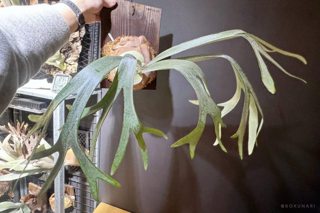 …とのことで、ビカクシダ初心者に育てやすいビカクシダの品種のひとつ「P. bifur sp.white」おすすめしました。