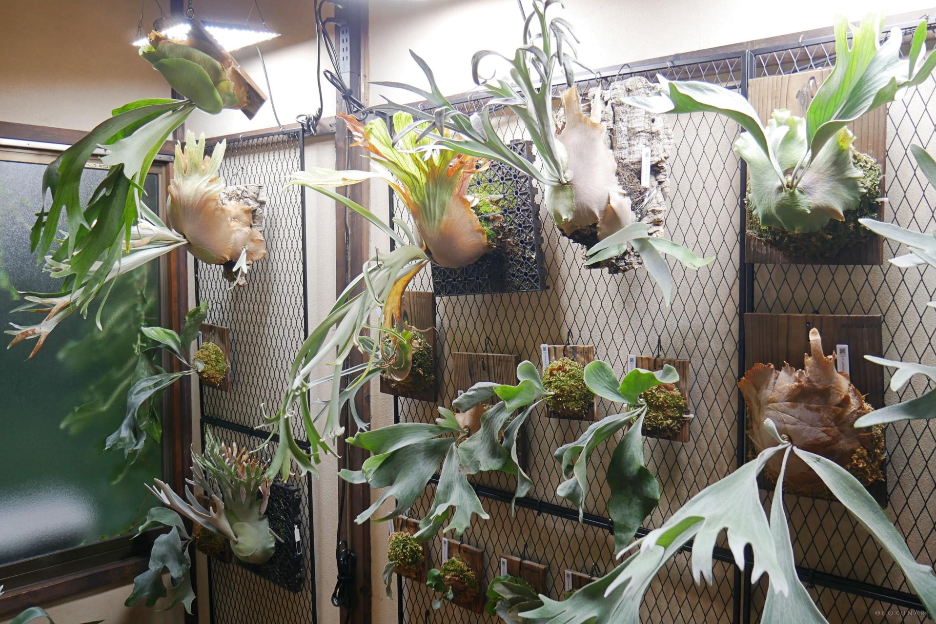 店舗2Fは、ビカクシダ展示販売スペースとなっているので、実際にビカクシダを眺めながら会話や情報交換が盛り上がります。
